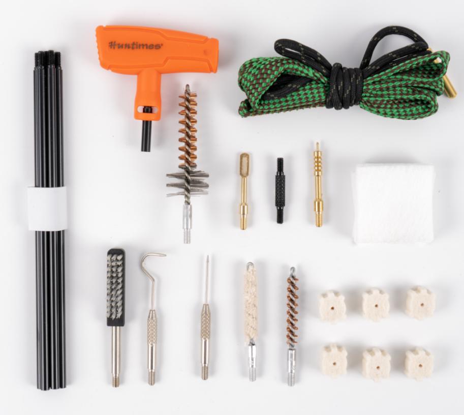 Setul de curățare a puștilor Huntimes® este un sistem complet pentru a vă menține arma curată și a trage cu precizie. Piesele de cupru, tijele de oțel și periile din bronz fosforat protejează găurile. Setul de curățare Huntimes® Shotgun este un sistem complet de curățare care se deplasează cu ușurință cu tine.