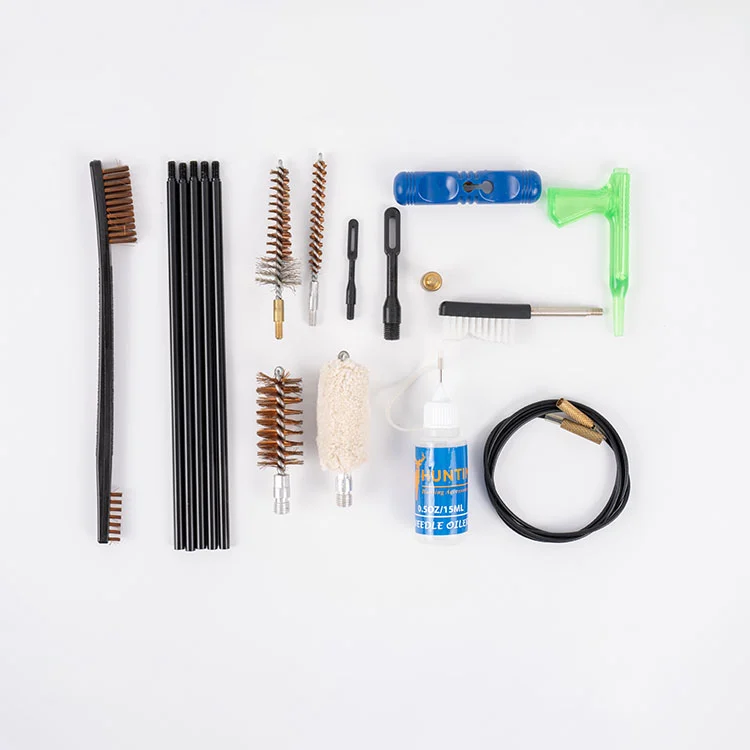 1 buc. mâner personalizat, 3 buc perii pentru alezaj (12ga, . 223Cal), 1 buc. perie pentru alezaj cu camera stea (5, 56 mm), 1 buc. iluminator 3-în-1, 1 buc mop (12ga), 1 buc perie de curățare cu 8-32 fire de curățare, 1 buc.